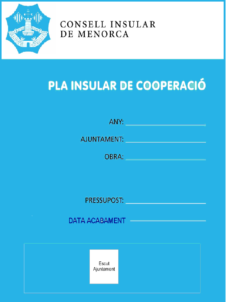 ANNEX Bases que regeixen la convocatòria del Pla Insular de Cooperació del Consell Insular de Menorca per a l'any 2025, per a la redacció de projectes, direcció i execució d'obres, l'adquisició d'equipaments municipals, l'adquisició de vehicles elèctrics per als serveis municipals, la millora de zones turístiques, la retirada d'amiant d'edificis de propietat municipal, la redacció d'informes, estudis i plans municipals, i l'Agenda Urbana