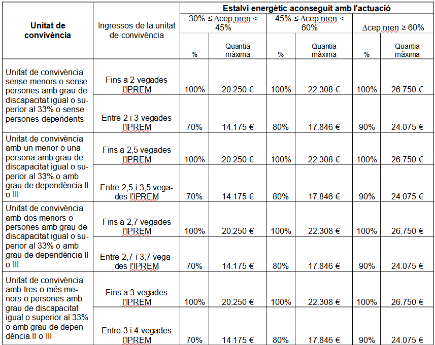 En el cas d'incompliment parcial sobre l'objectiu d'estalvi energètic de l'actuació, s'ajustarà l'import de la subvenció a l'estalvi energètic realment aconseguit, segons taula d'estalvi energètic en l'article 22.