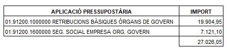TERCER.- AUTORITZAR I DISPOSAR (AD) la despesa per un import de 27.026,05 euros en concepte de retribució com a regidora en dedicació exclusiva a l'Ajuntament d'Inca, d'acord amb els imports fixats en l'acord de Ple de data 6 de juliol de 2023 i les cotitzacions de la seguretat social vigents legalment a la data actual, i amb càrrec a les següents aplicacions pressupostàries: