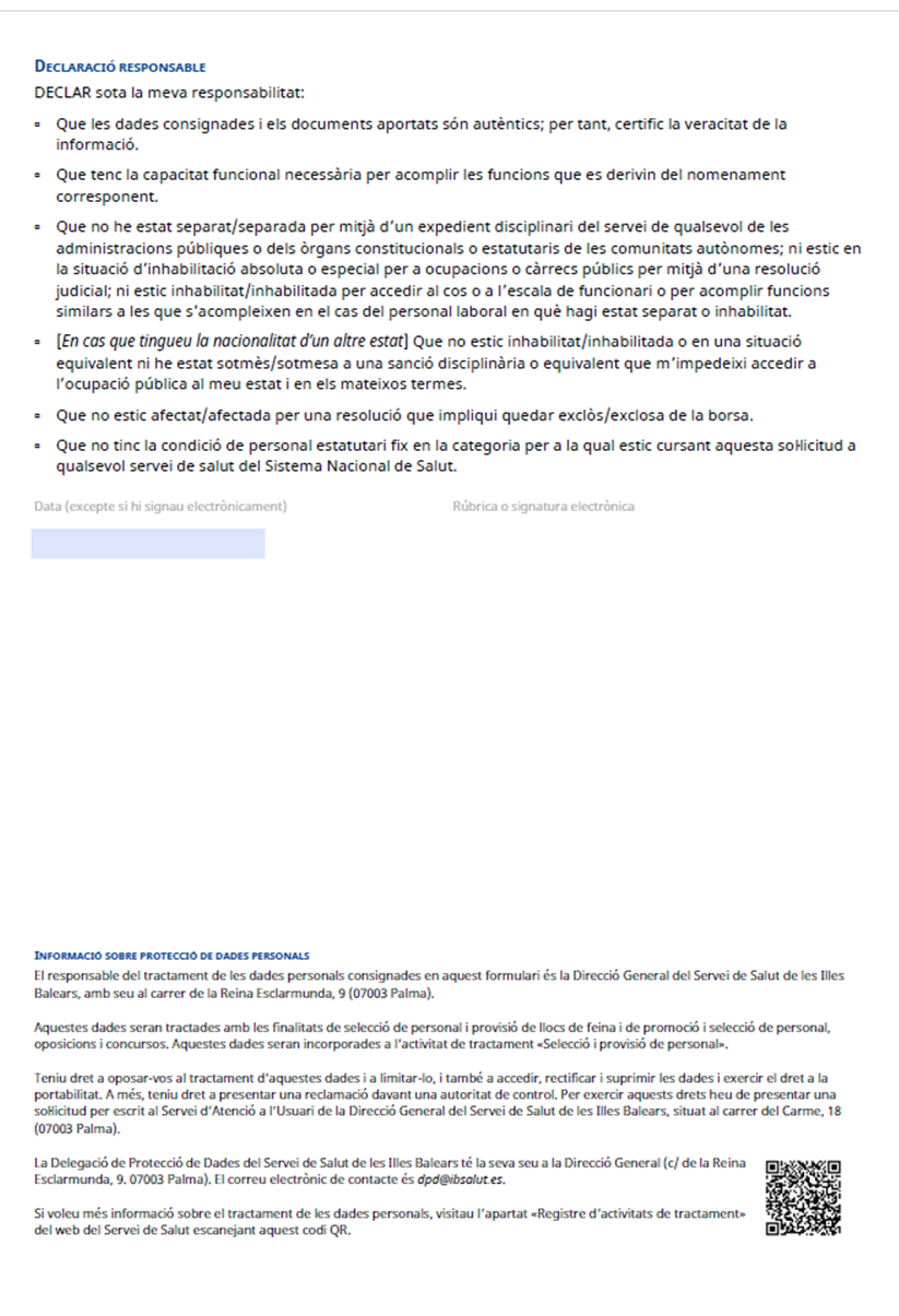3.2. La sol·licitud i les instruccions per emplenar-la es poden descarregar en PDF des del web www.ibsalut.es (seguint la ruta Professionals > Recursos Humans > Treballa amb nosaltres > Convocatòries específiques).