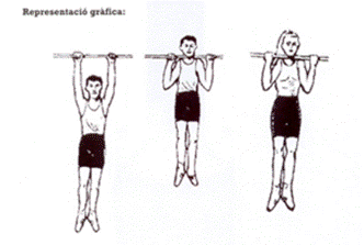 Els braços han d'estar completament estirats i l'aspirant ha d'estar en suspensió total sense tocar en terra amb els peus.