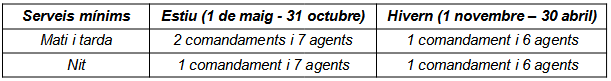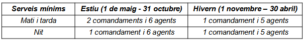 Durant període estival (d'1 de maig a 30 de setembre), s'establirà una unitat de caràcter voluntari, composta com a mínim per 1 comandament i 4 agents de policia .