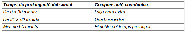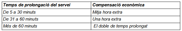 Si per necessitats del servei, aquest es prolongués fora de l'horari assignat, es farà constar en els comunicats d'incidència del cap de Servei, i serà retribuït com a hores extres de la següent manera: