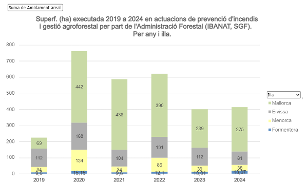 FIGURA 5.2.c). Balanç 2019-2024 en matèria de prevenció d'incendis i gestió forestal, per illa.