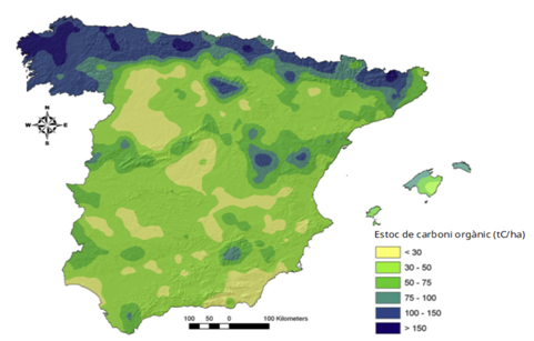 Además, existe un estudio que evalúa los stocks de carbono en el suelo para el ámbito territorial concreto de la isla de Mallorca. Los valores de referencia que muestra son los siguientes:
