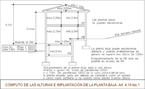 4. El piso de la planta baja no podrá situarse a una altura superior a las siguientes cantidades: