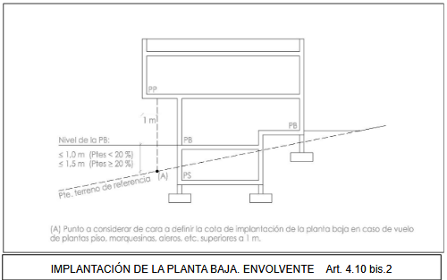 La dimensión anterior será la máxima que podrá sobresalir la planta de sótano situada debajo de la planta baja, medida en el punto más desfavorable.