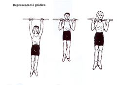La aspirante debe situarse en posición de suspensión, con los brazos flexionados, cogida en la barra horizontal sin tocar el suelo. Las palmas de las manos deben mirar hacia el cuerpo; las piernas deben estar totalmente estiradas y juntas, y la barbilla por encima de la barra horizontal sin tocarla.