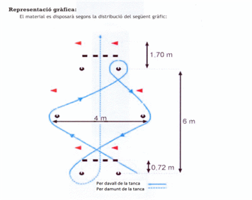 Se llevará a cabo en una zona totalmente lisa y plana de 8 m x 4 m, dotada de los siguientes elementos: