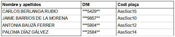 TERCERO. Nombrar personal funcionario en prácticas del Ayuntamiento de Eivissa a las siguientes personas, informándolas que una vez finalice el período de prácticas, los aspirantes que lo hayan superado satisfactoriamente serán nombrados funcionarios de carrera: