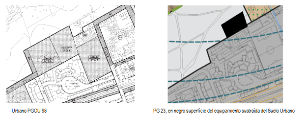 El equipamiento afectado por la presente modificación del PGOU 1998, con código EQ0b/DP-P 57-02-E, quedó afectado por el cambio de delimitación del suelo urbano, puesto que parte de los terrenos del mencionado equipamiento, incluidos en el suelo urbano en el PGOU 98, han pasado a suelo urbanizable en el PG 23.