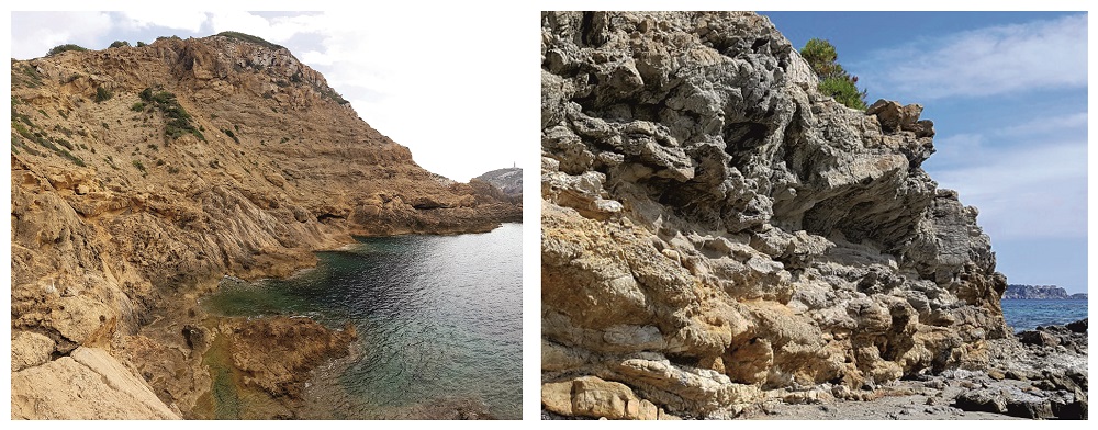 Limestones of the Middle Jurassic in Cala Fornells (left) and Upper Jurassic in Cala Llonga (right).