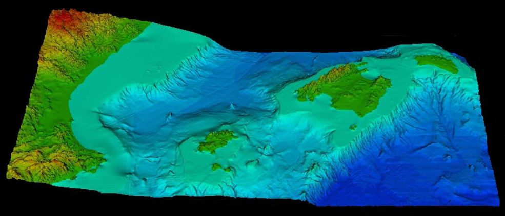 Bathytopographic map of the Balearic Promontory and Gulf of Valencia, created by GRC Geociències Marines, Geology Faculty, UB.