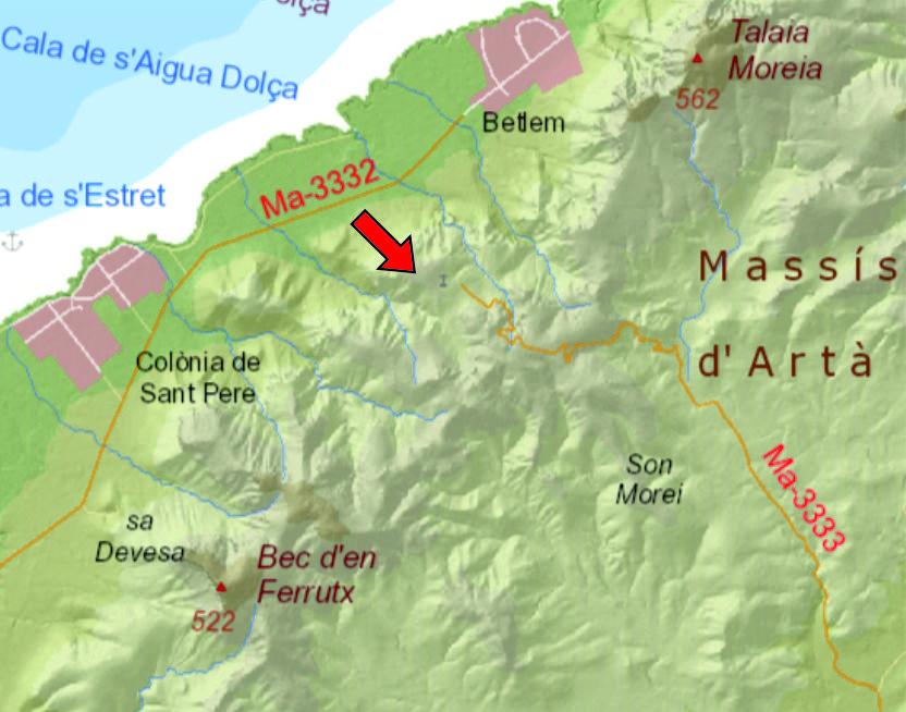 The access path starts behind the Betlem hermitage which is reached by the Ma-3333 road from Artà. It is a well-marked path of some 400 m that climbs up the northern slope to the summit line, where the aircraft observatory is located.