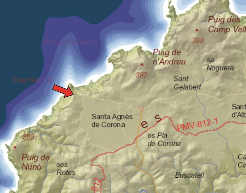From the village of Santa Agnès de Corona, take the road to the left (Camí de Sa Talaia) until you reach the restaurant Ses Portes del Cel. Continue along a narrow shore path above the cliffs until a plain.