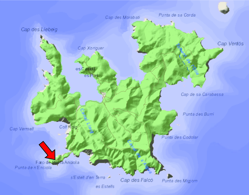 The viewpoint is located on the S’Ansiola end, in the south-east of the island of Cabrera Gran.