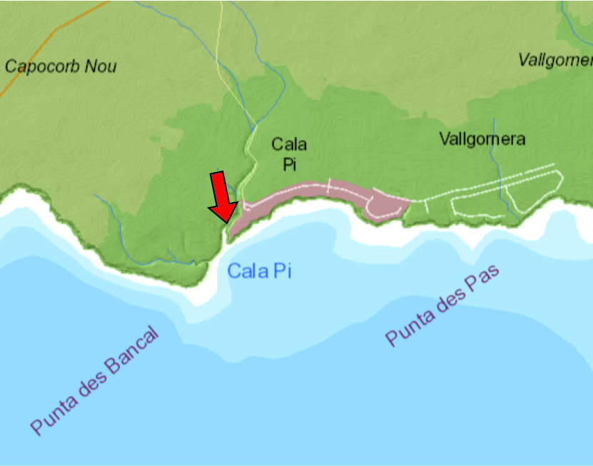 Access is by way of a staircase indicated with the sign “Platja” from the Cala Pi residential development.