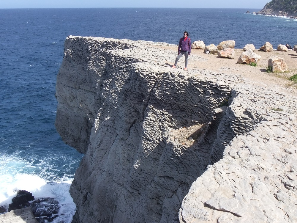 Acantilado en el punto A, formado por materiales del Mioceno inferior, de la Formación Sant Elm.