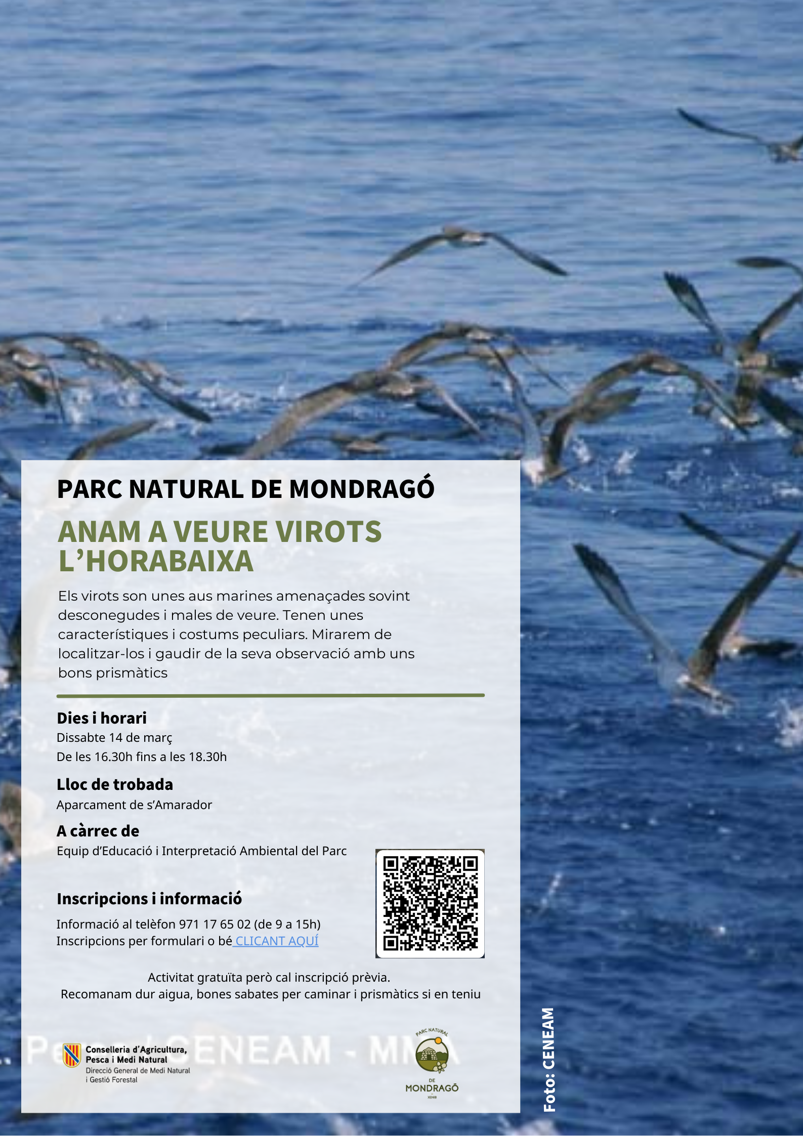 CONTACTE: Per qualsevol dubte telefonar al 971 17 65 02 (Centre d'Informació del Parc) de 9 a 15h