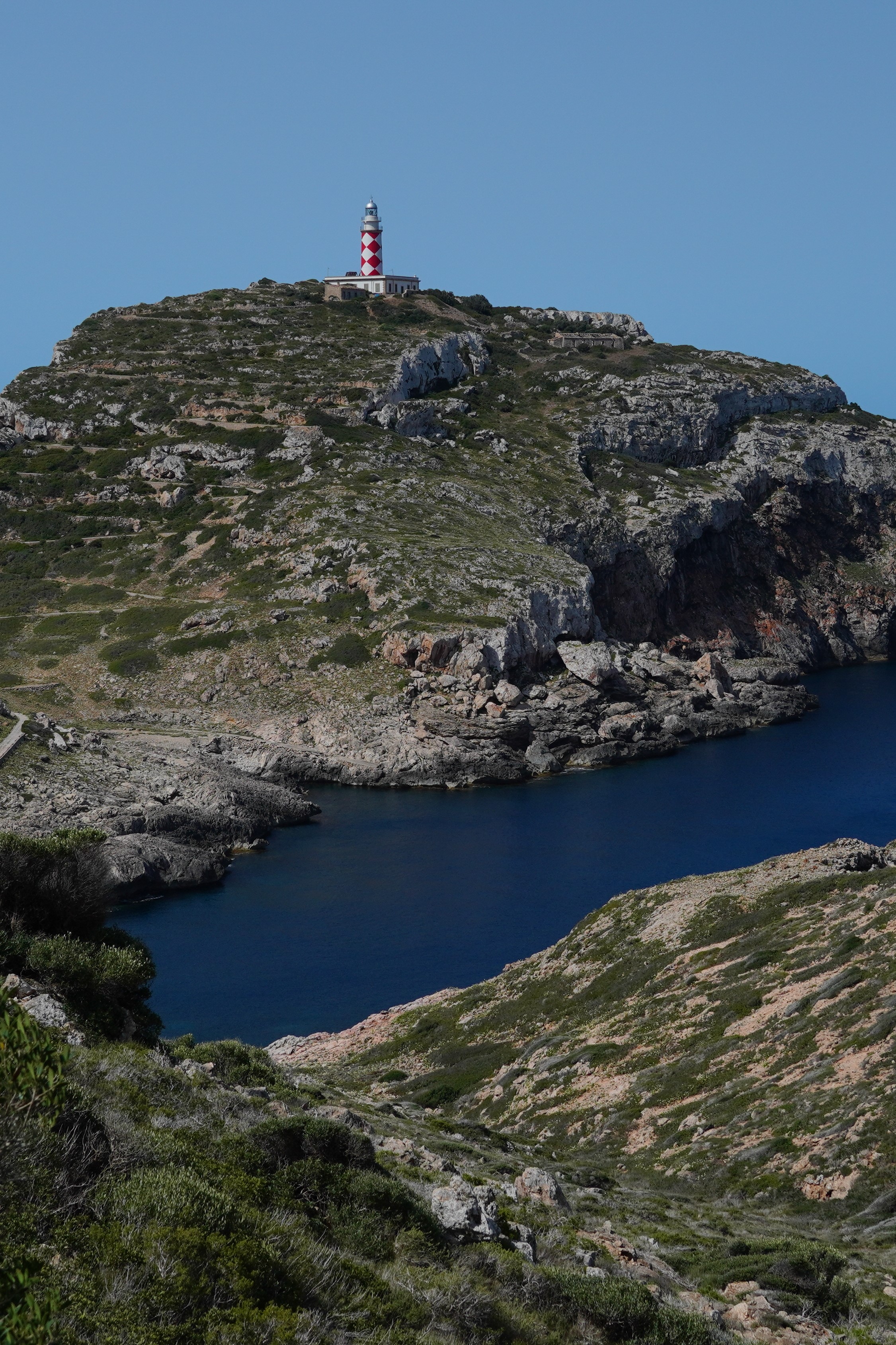 Un cop travessat el coll, el paisatge canvia cap a un entorn més àrid i inhòspit. En arribar al far, es pot gaudir de les vistes sobre la mar i el sud de Cabrera que es perden en l’horitzó.