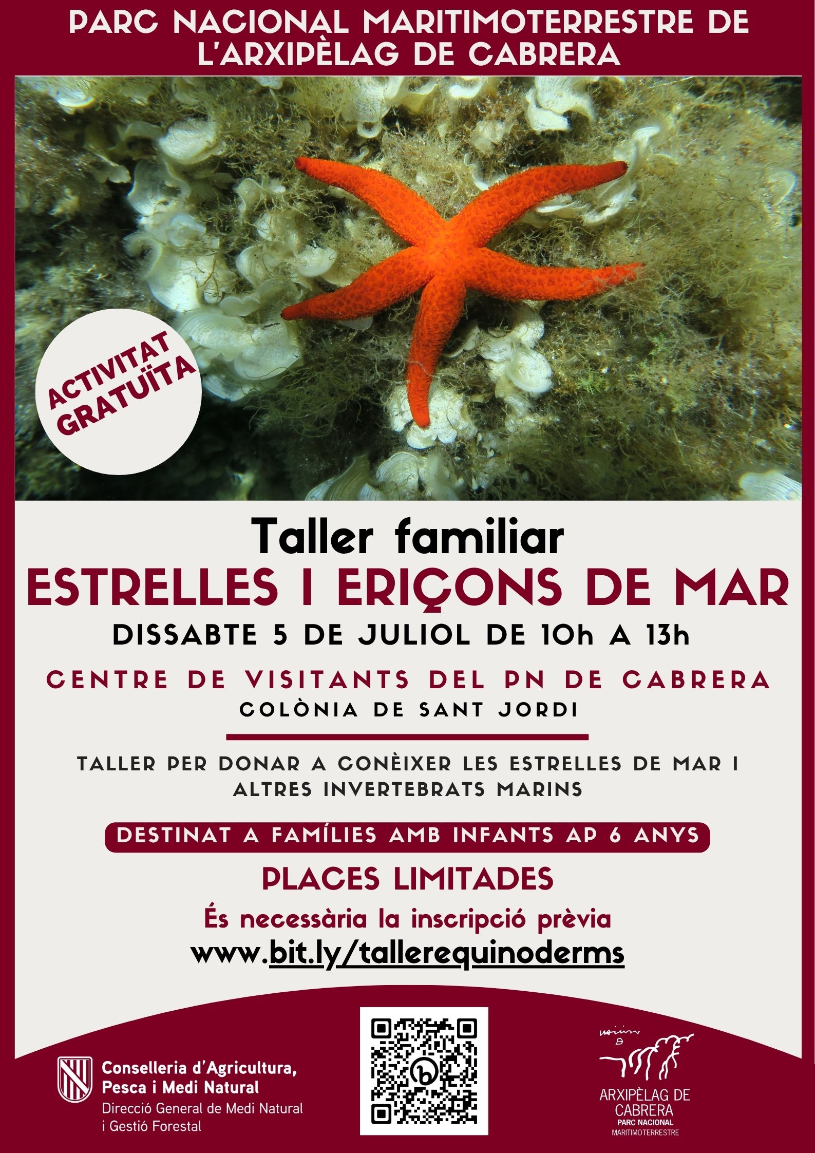 DESCRIPCIÓN: Taller familiar para conocer las estrellas, erizos y otros invertebrados marinos de Cabrera.