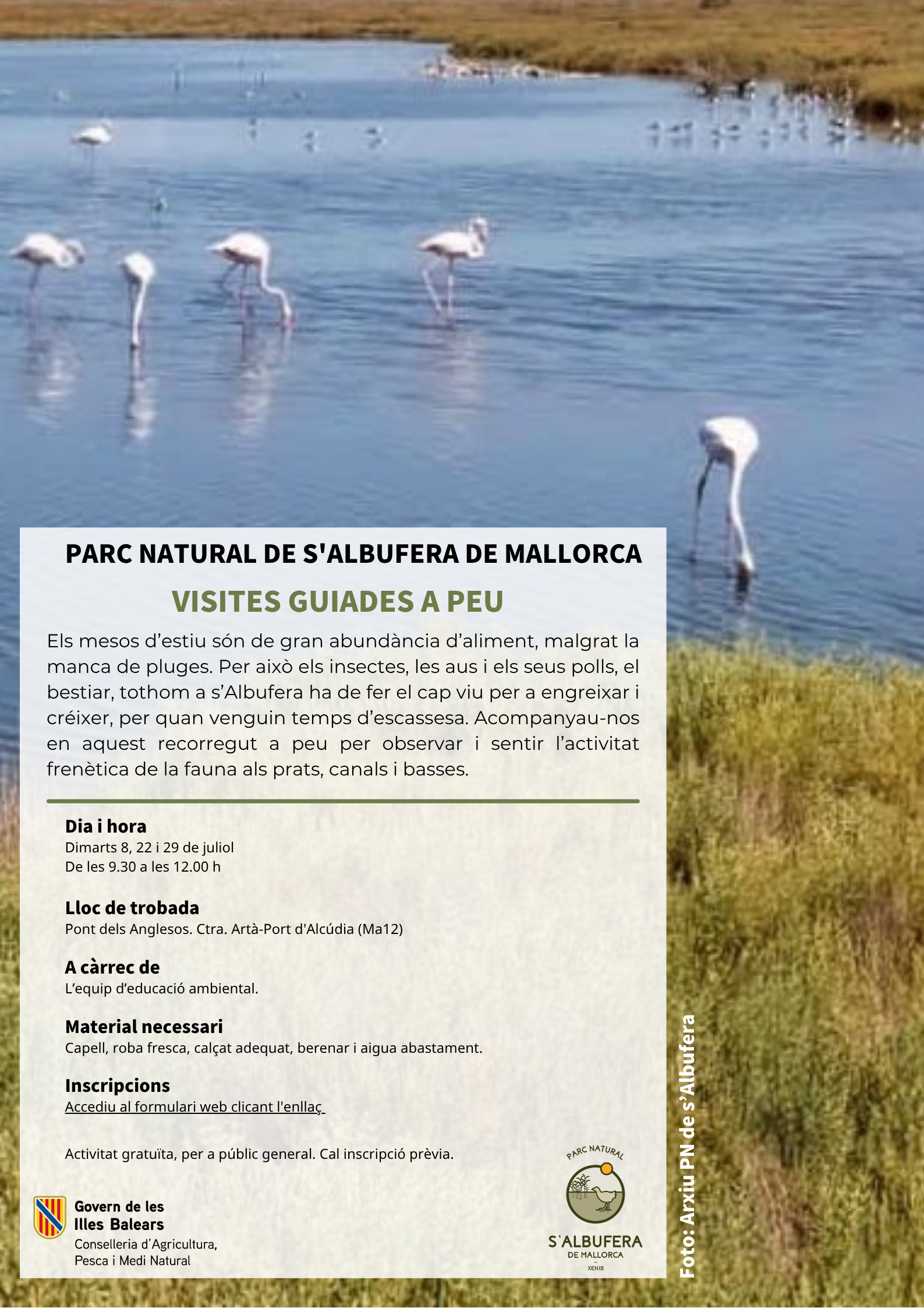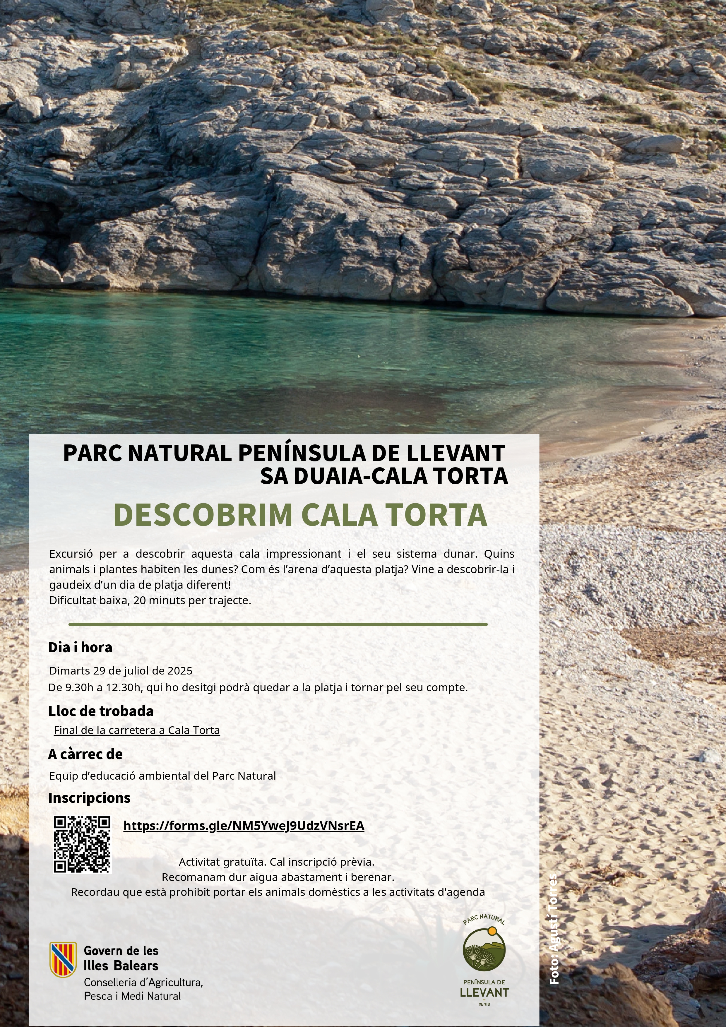 AVISO IMPORTANTE: Para incribirse, debe llenar el formulario. Si tiene alguna duda, puede contactar con educacioambientalpnesgrau@caib.es y teléfono 971177705.