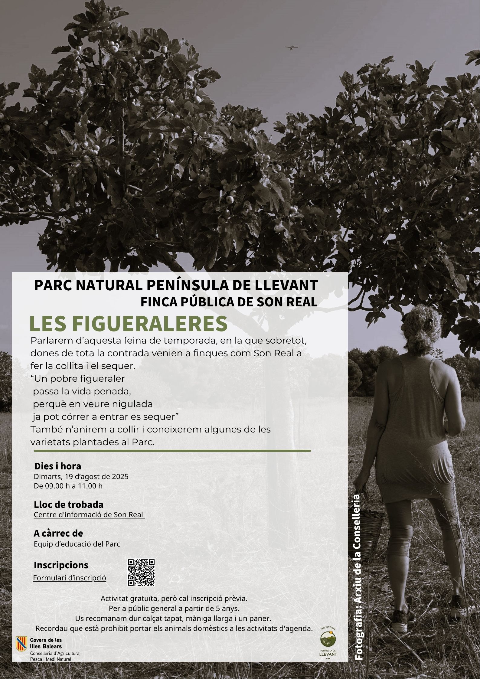 OBSERVACIONES: Actividad gratuita, pero hace falta inscripción previa. Para público general a partir de 5 años. Os recomendamos traer calzado cubierto, manga larga y un cesto. Recordad que está prohibido traer los animales domésticos a las actividades de agenda.
