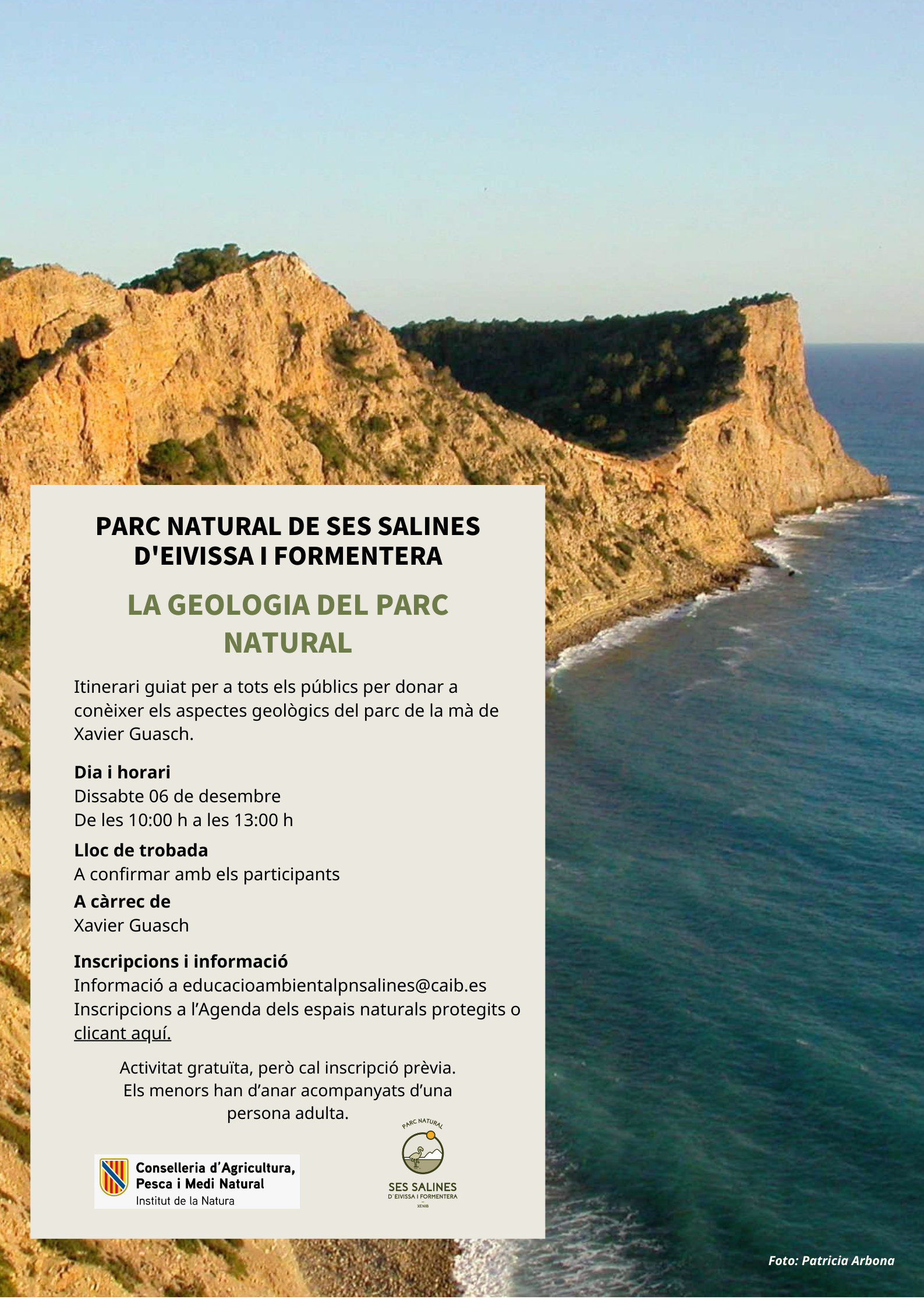 AVISO IMPORTANTE: Para realizar la inscripción es necesario rellenar el formulario. Par cualquier duda contactar por correo electrónico a: educacioambientalpnsalines@caib.es
