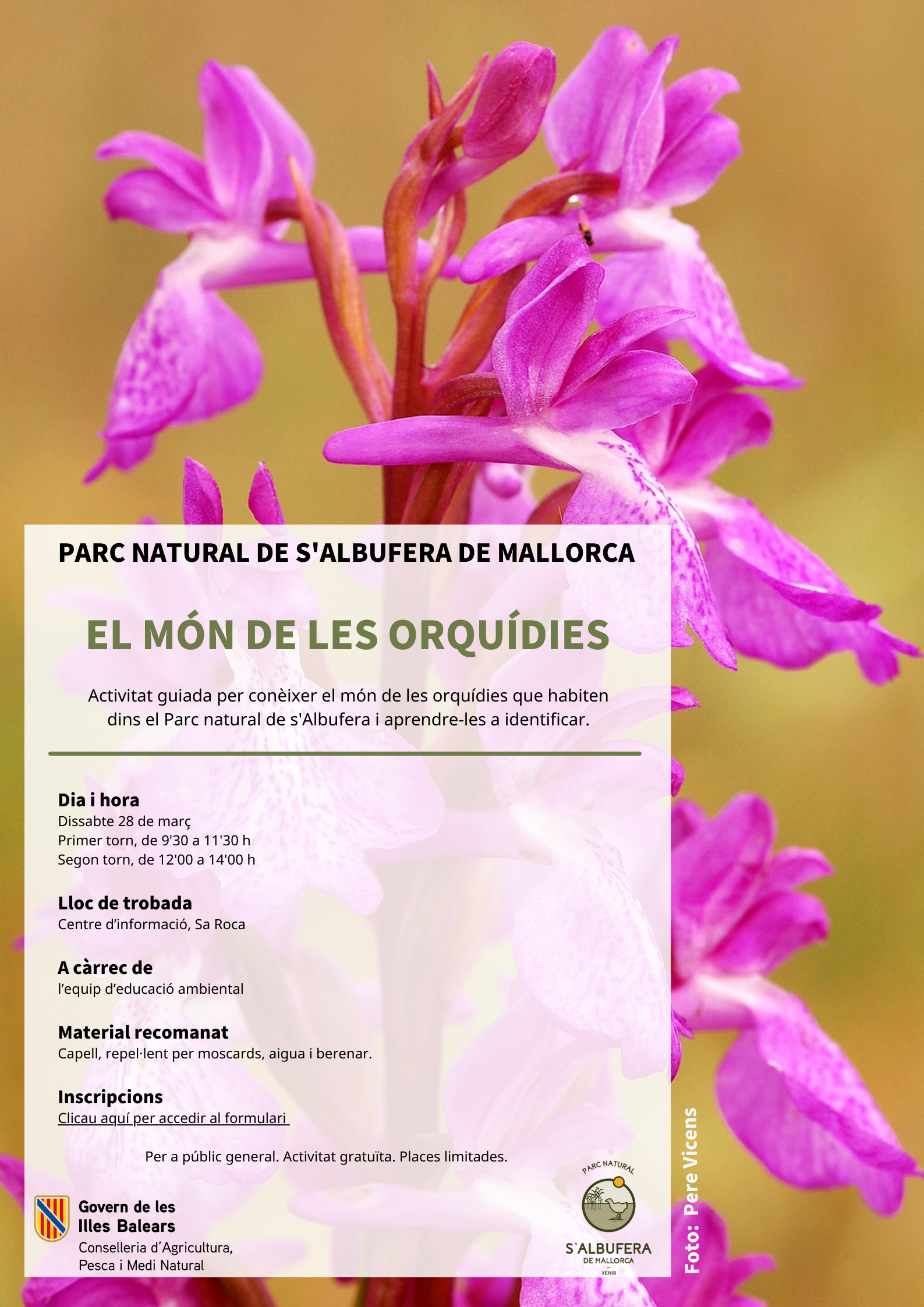 Actividad guiada para conocer el mundo de las orquídeas que habitan dentro del Parque natural de s'Albufera y aprenderlas a identificar.