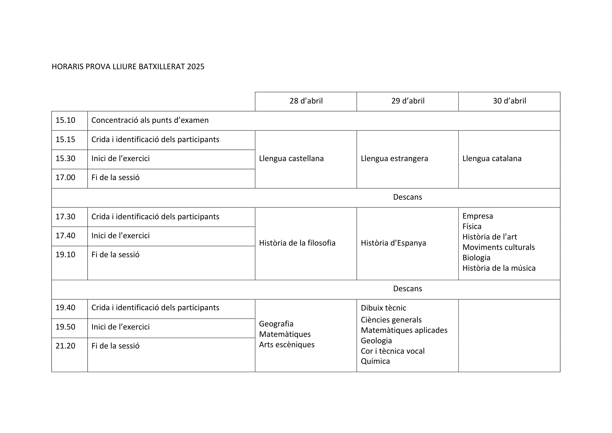 Servei d'Ordenació Educativa - Prova lliure de batxillerat