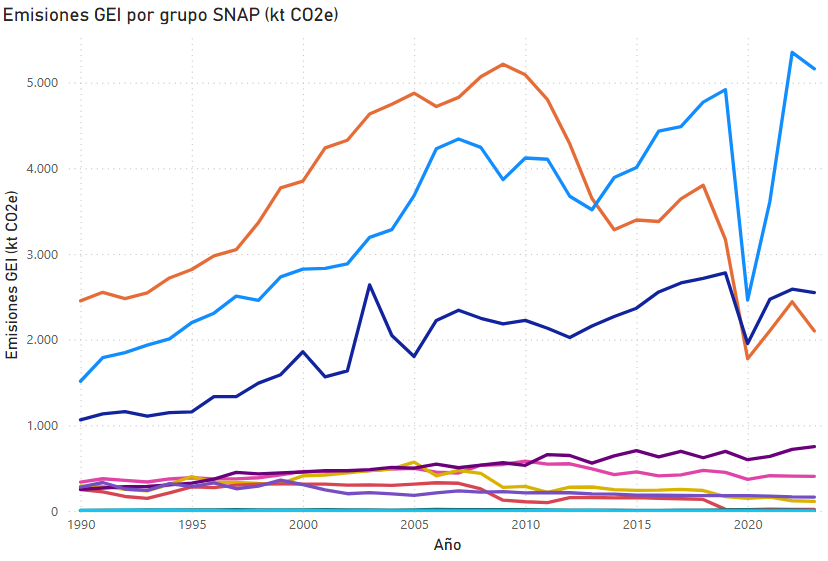 Emisiones gases contaminantes Balears 1990-2023 SNAP
