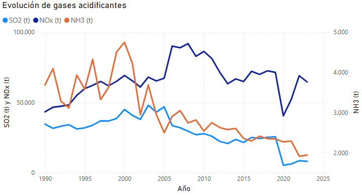 Los gases acidificantes son los que contribuyen a la acidificación del medio ambiente, especialmente de los ecosistemas y la lluvia. Los principales gases acidificantes son el dióxido de azufre (SO2), los óxidos de nitrógeno (NOx) y el amoníaco (NH3). Estos gases, al entrar en contacto con el agua de la lluvia, pueden formar ácidos que causan daños a la salud, ecosistemas, materiales y construcción.