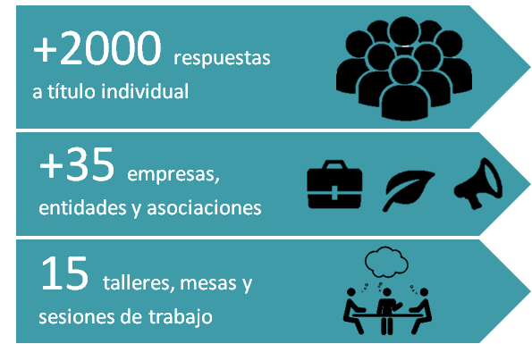 Dentro de este marco de actuación se realizaron 6 talleres de debate ciudadano y 9 mesas sectoriales con representantes de las principales instituciones políticas, turismo y sector servicios, empresas, sector energético, ciencia e innovación, ONG y el sector agrario.