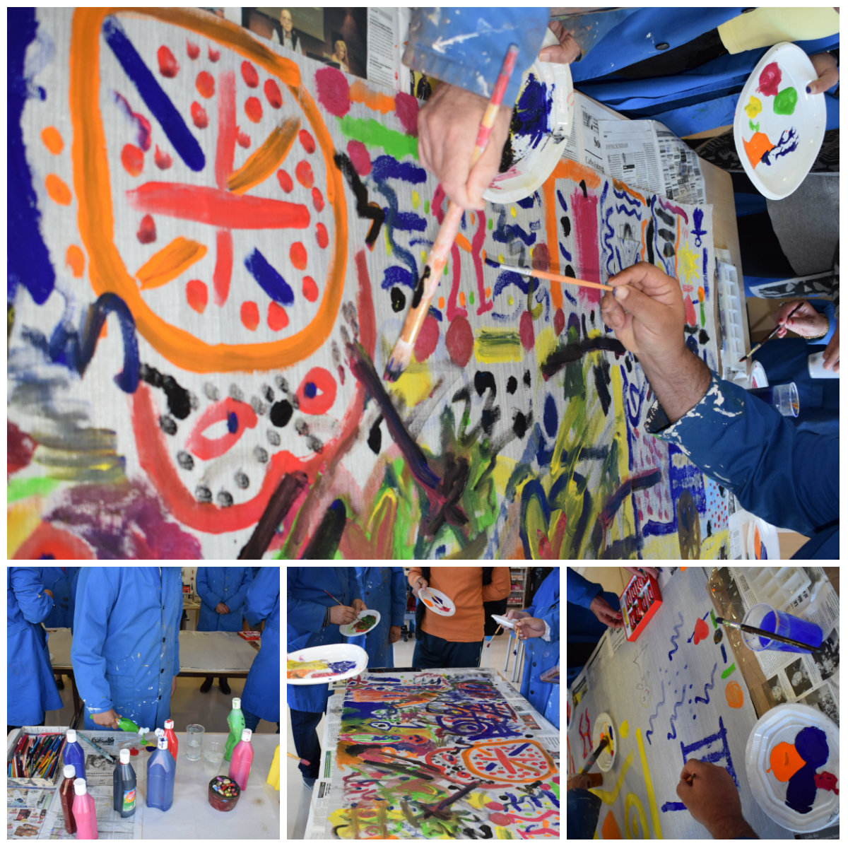 Experimentació lliure i grupal amb temperes de diferents colors en el qual s'interpretava el ritme de la música Eivissenca mitjançant la pintura per després utilitzar-lo en l'exposició cultural que es realitza cada any en el centre de dia. Amb aquesta activitat es treballa la contenció personal i s'adquireixen habilitats instrumentals i interpersonals, competències comunicatives i sentiment de respectar i ajudar als altres.