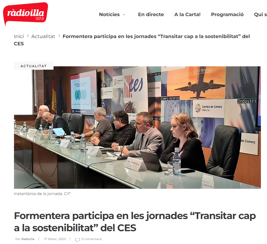 L'article comenta la participació d'Alejandra Ferrer, vicepresidenta i consellera de Turisme de Formentera, en les jornades «Transitar cap a la sostenibilitat» organitzades pel CES