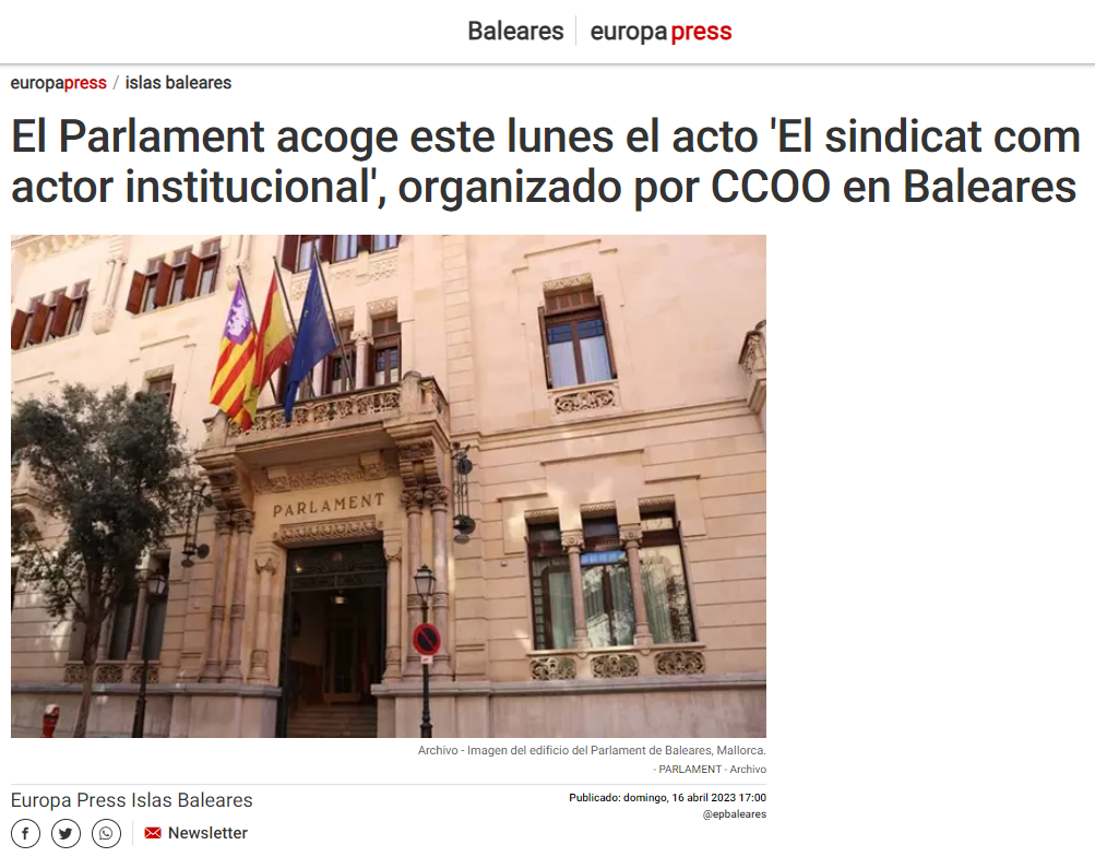 El president del CES participa en la Jornada organitzada per CCOO amb la ponència “El paper del Consell Econòmic i Social de les Illes Balears com a ens generador de consensos”