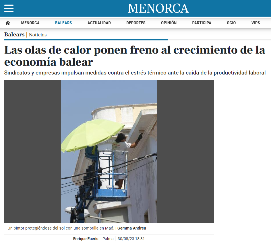 El conseller en representació de les associacions de persones consumidores i usuàries del CES, Pau A. Monserrat Valentí, incideix en l’obligació d’adaptar l’àmbit empresarial a l’augment de temperatures, no només pels riscos laborals sinó també per evitar caigudes més rellevants en el PIB.