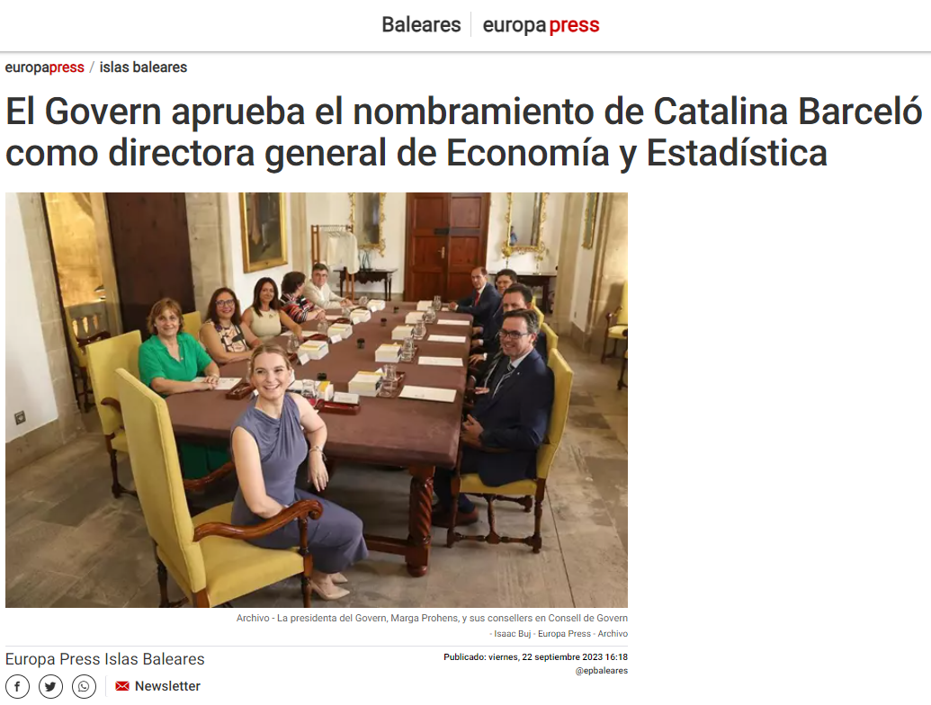 A l’article es relaciona la nova directora general d’Economia i Hisenda amb el CES, donat que va ser col·laboradora de la Memòria del CES