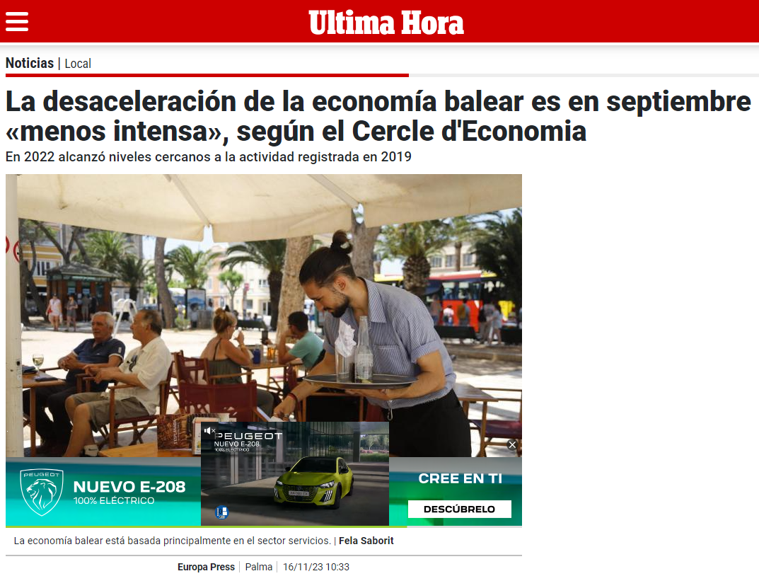 L'article menciona algunes dades de l'Índex Econòmic incloses a la Memòria del CES 2022
