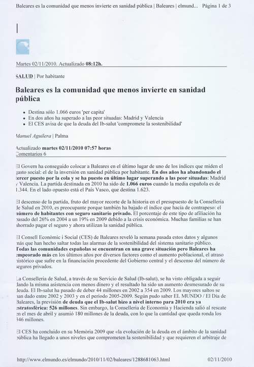 - El CES avisa de que la deuda del Ib-salut "compromete la sostenibilidad"
