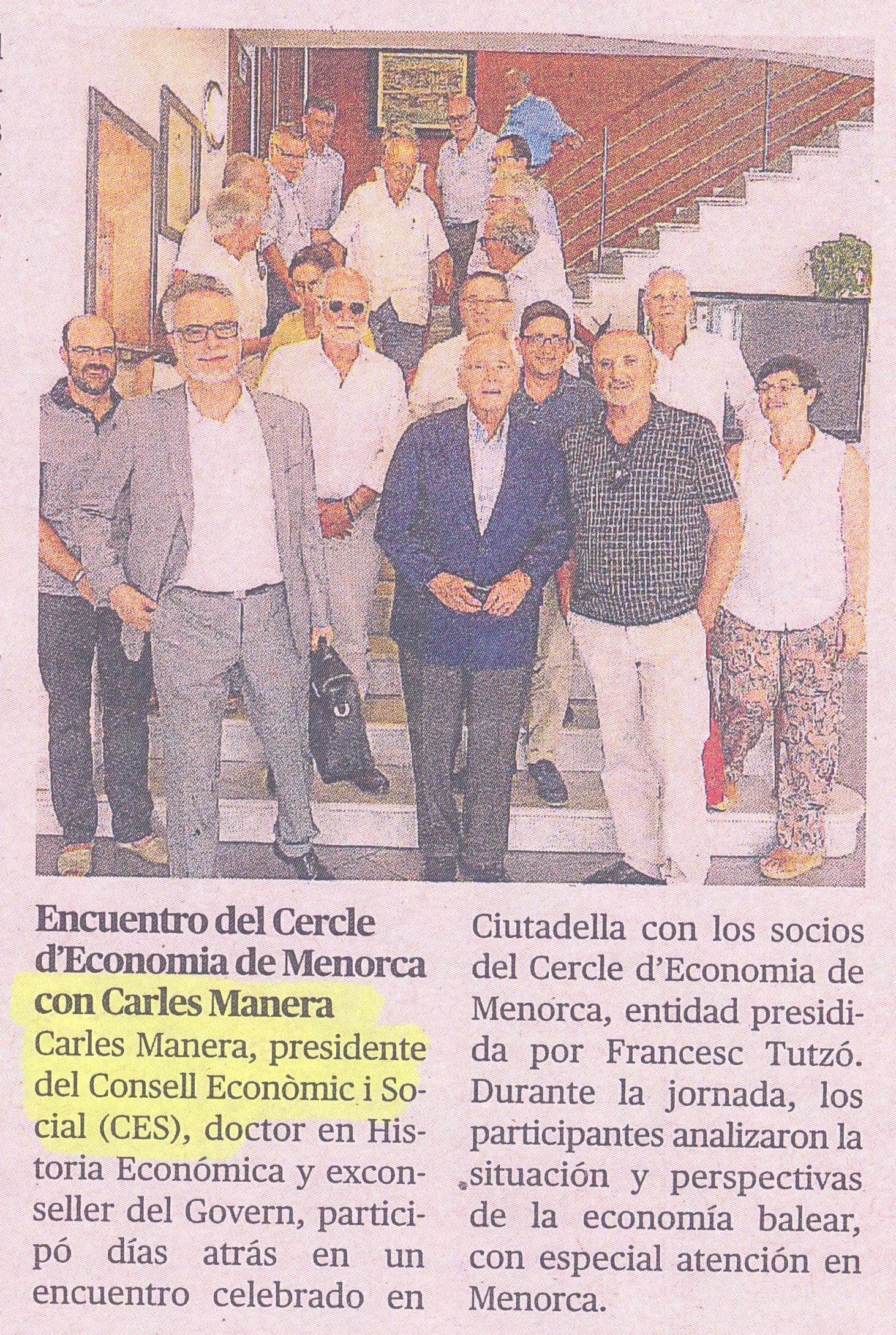 Encuentro del Cercle d'Economia de Menorca con Carles Manera