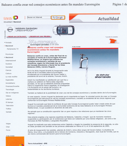 Baleares confía crear red consejos económicos antes fin mandato Eurorregión