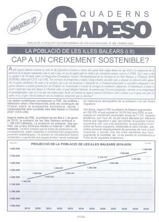 Anàlisis de la realitat socioeconòmica de les Illes Balears. Nº 388. Febrer 2020