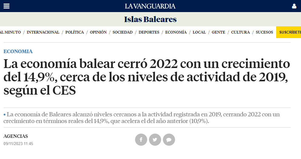L'article destaca algunes de les dades més rellevants compartides en una roda de premsa al Parlament de les Illes Balears on s'ha fet la presentació de la Memòria del CES sobre l'economia, el treball i la societat de les Illes Balears 2022