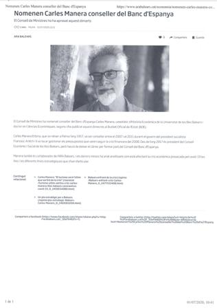 L'economista Carles Manera, nomenat conseller del Banc d'Espanya