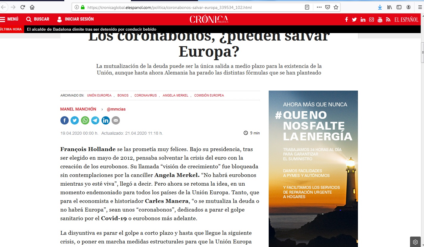 cronicaglobal.elespañol.com -- Crónica política (Artículo de opinión de Manuel Chinchón)  -- 19.04.2020