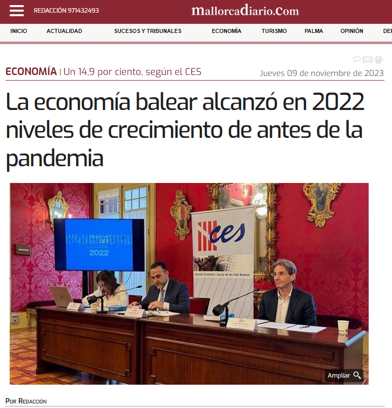 L'article destaca algunes de les dades més rellevants compartides en una roda de premsa al Parlament de les Illes Balears on s'ha fet la presentació de la Memòria del CES sobre l'economia, el treball i la societat de les Illes Balears 2022