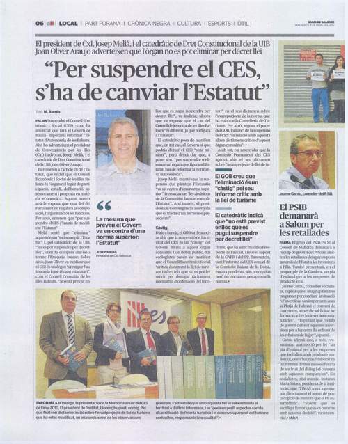 El president de CxI, Josep Melià, i el catedràtic de Dret Constitucional de la UIB Joan Oliver Araujo adverteixen que l'òrgan no es pot elimianr per decret llei
