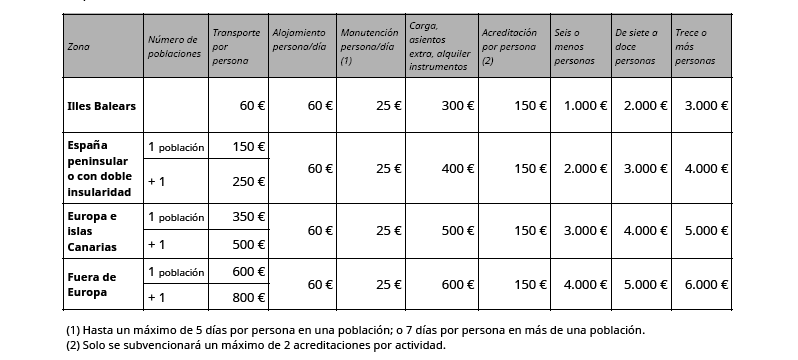 • El desplazamiento y estancia de personas y personal técnico para llevar a cabo actividades o actuaciones en directo fuera de la isla de residencia.