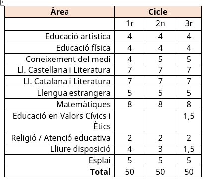 Estructura i càrrega horària